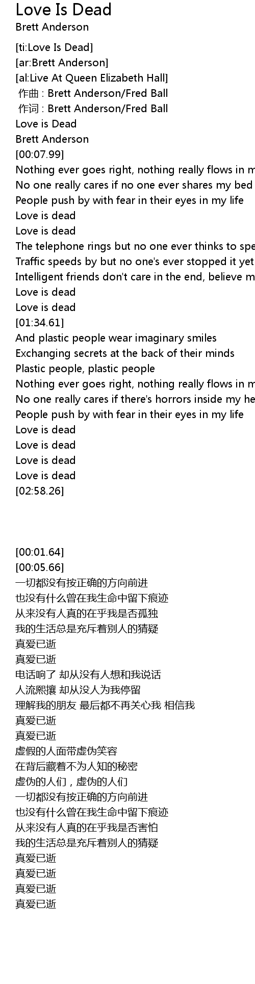 | [00:00.354] | 作词 : Brett Anderson/Fred Ball |