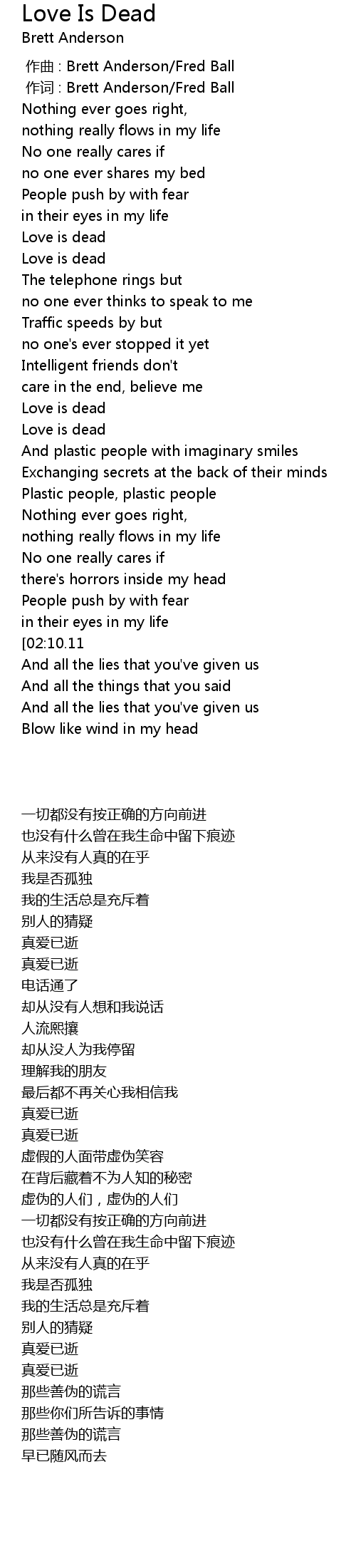 | [02:54.48][02:10.11] | Love is dead |