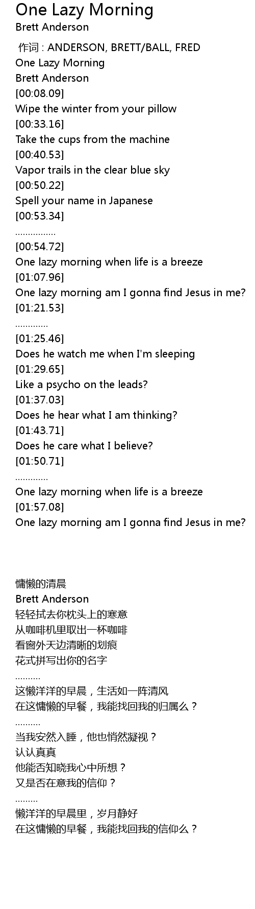 | [00:57.22] | One lazy morning when life is a breeze |