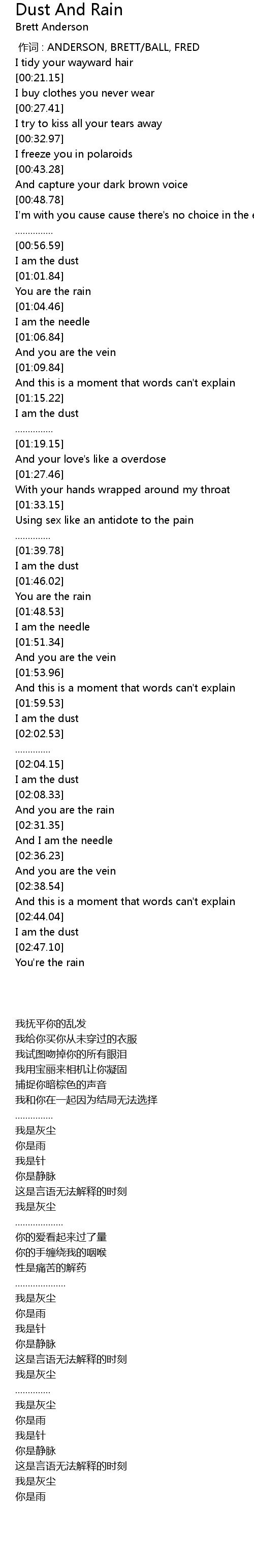 | [02:01.21] | I am the dust |