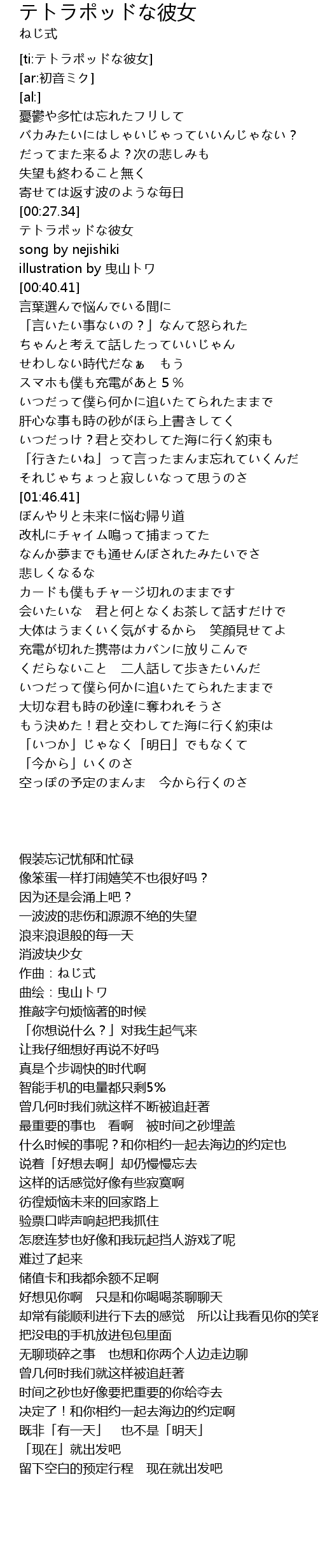 | [02:41.52] | 充電が切れた携帯はカバンに放りこんで |