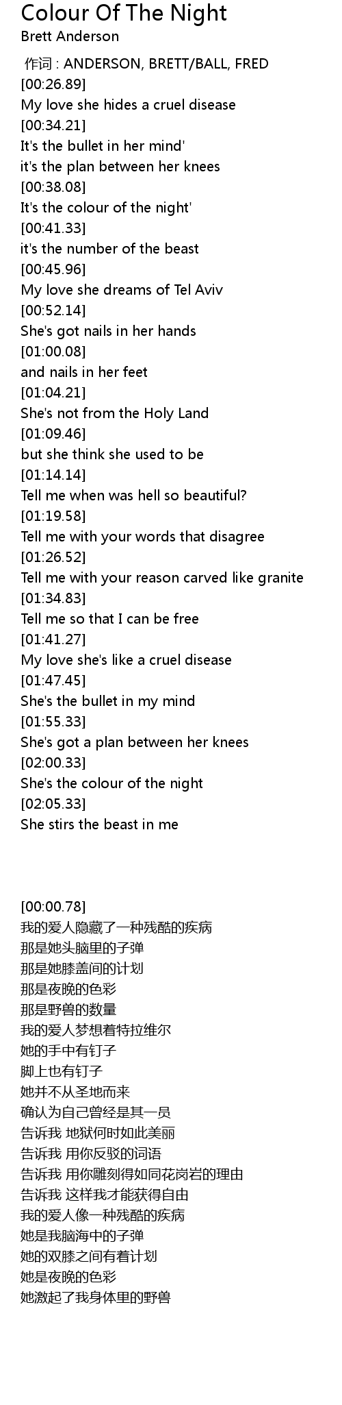 | [02:02.64] | She's the colour of the night |
