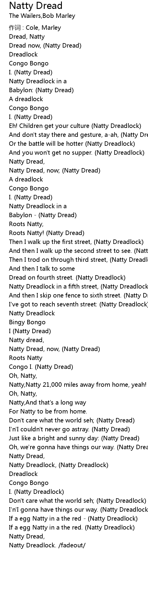 | Natty Dreadlock. /fadeout/ |