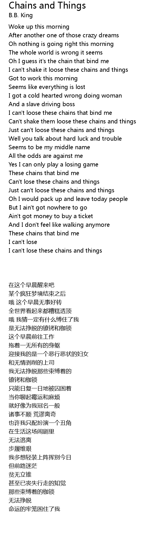I can't shake it loose these chains and things |