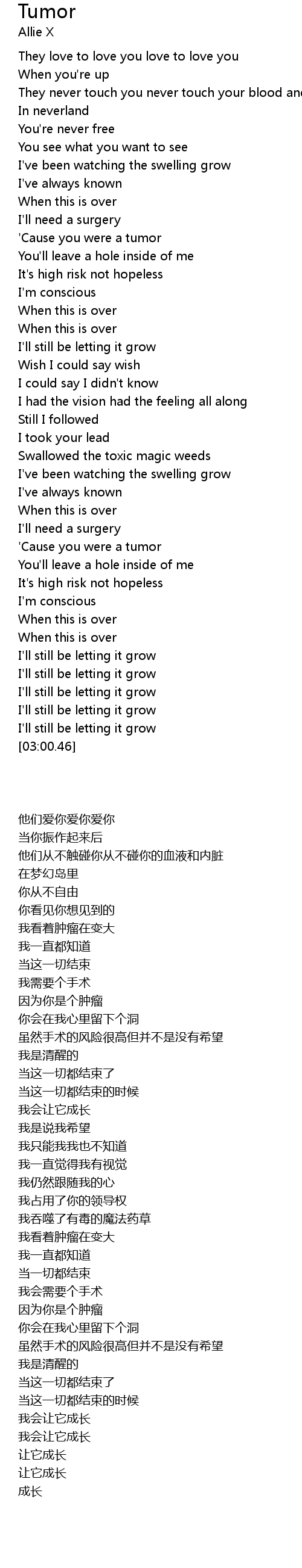 'Cause you were a tumor |