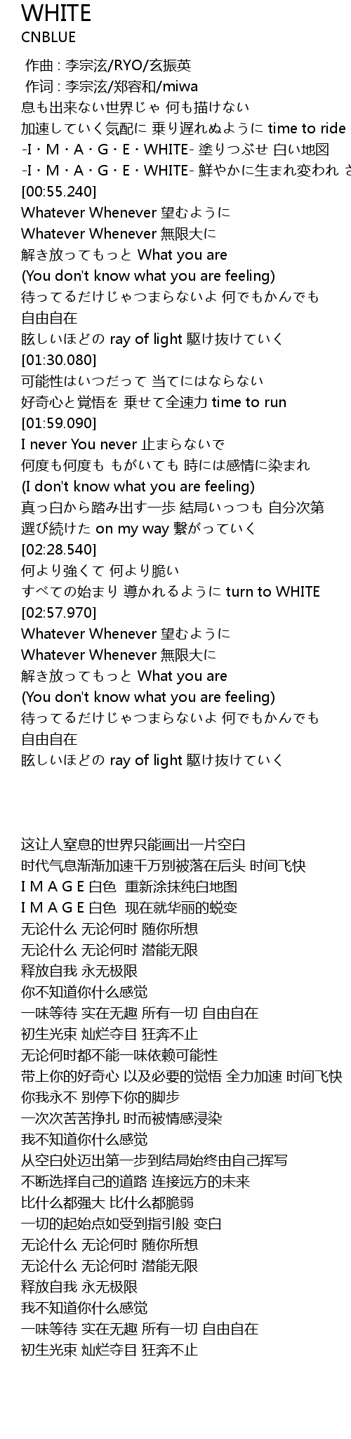 | [00:41.400] | -I・M・A・G・E・WHITE- 塗りつぶせ 白い地図 |