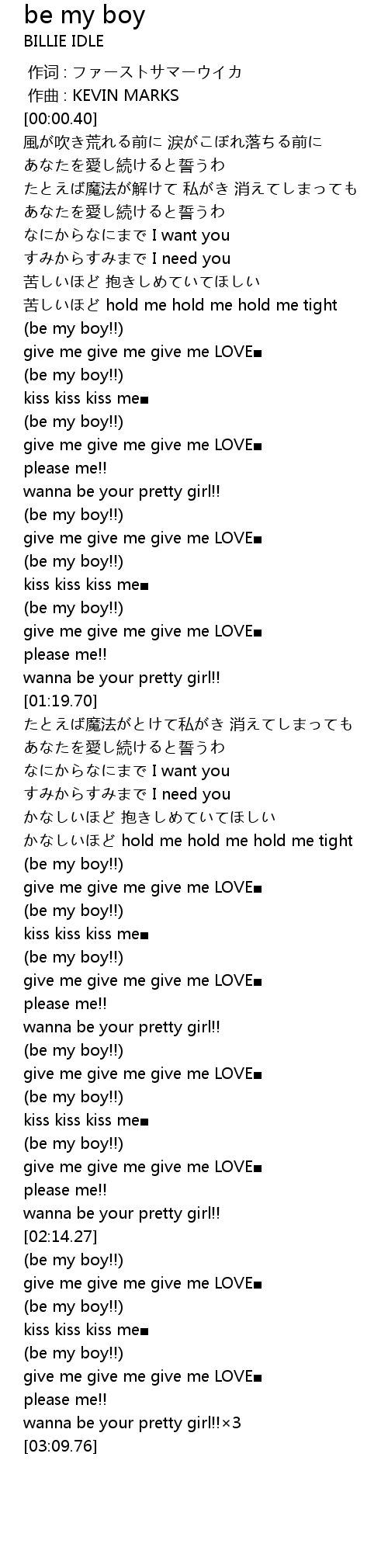 | [02:03.02] | be my boy!! |