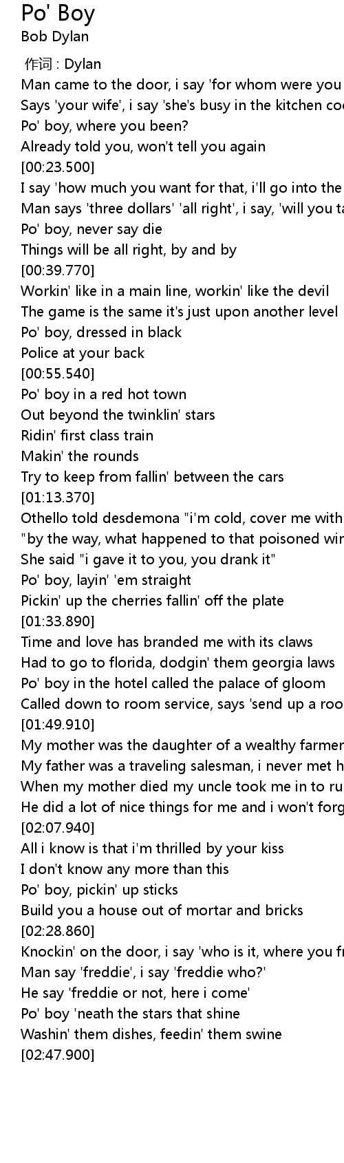 | [00:48.400] | Po' boy, dressed in black |