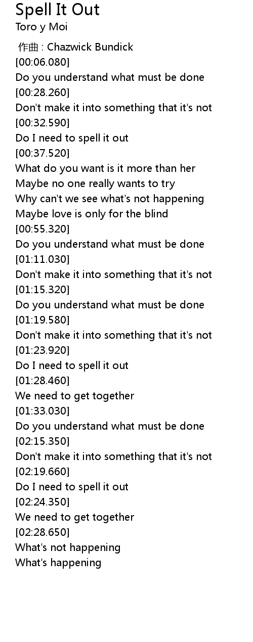 | [02:21.450] | Do I need to spell it out |