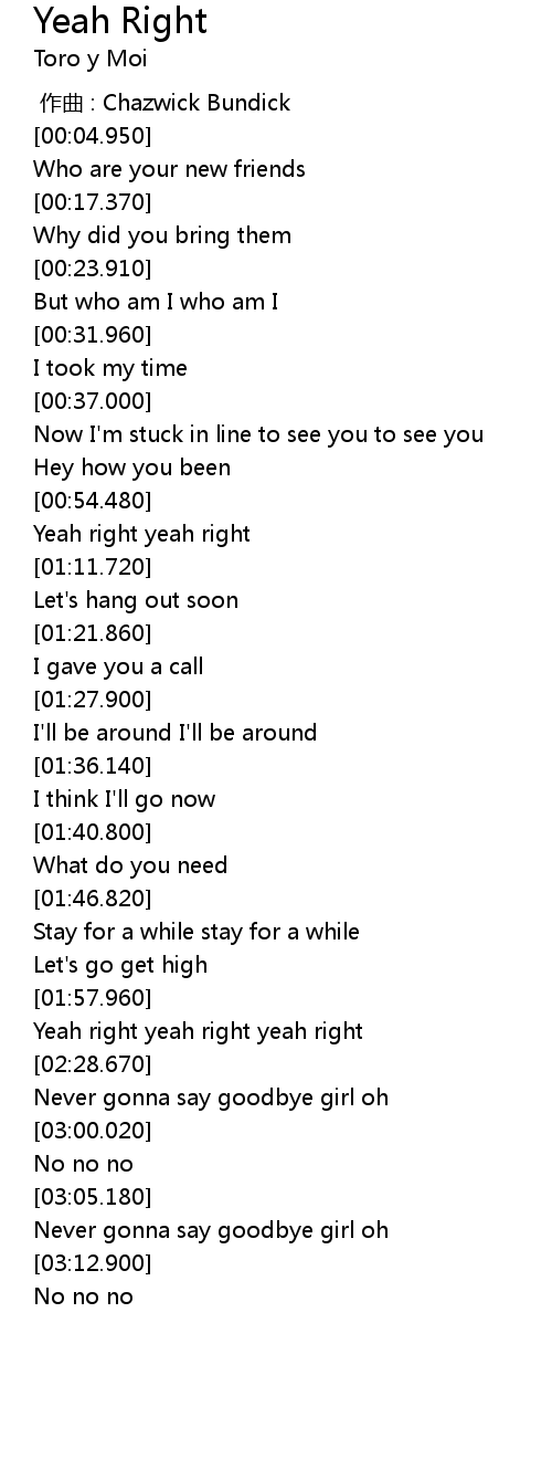 | [03:07.440] | Never gonna say goodbye girl oh |
