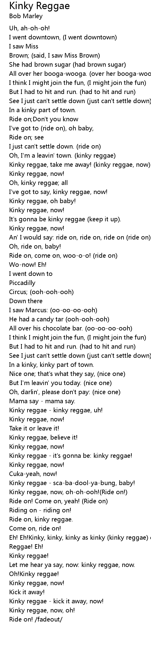 Kinky reggae, now, oh-oh-ooh!(Ride on!) |