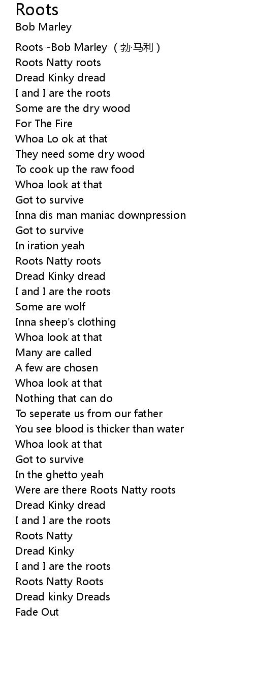 | [00:00.00] | Roots -Bob Marley (勃·马利) |