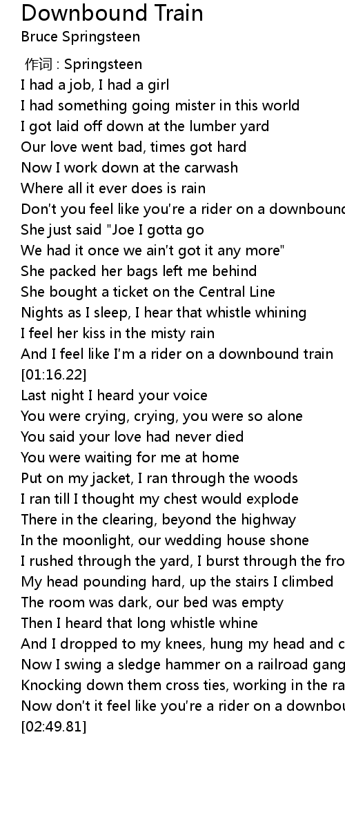 | [01:11.74] | And I feel like I m a rider on a downbound train |