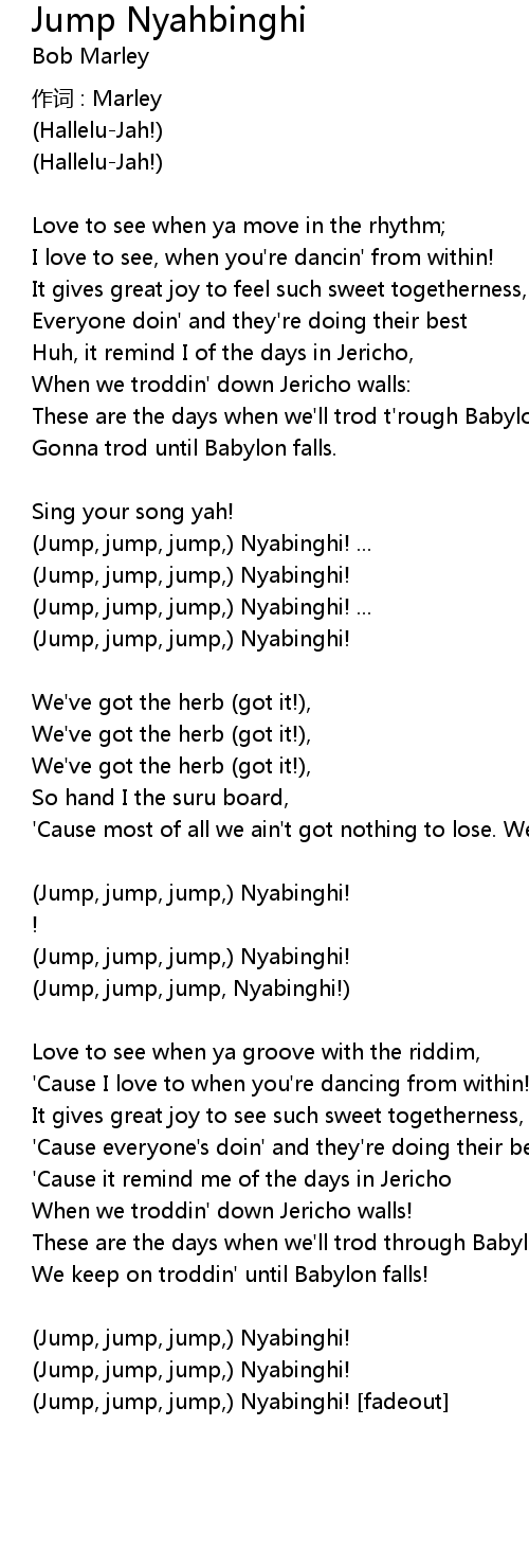| (Jump, jump, jump,) Nyabinghi! [fadeout] |