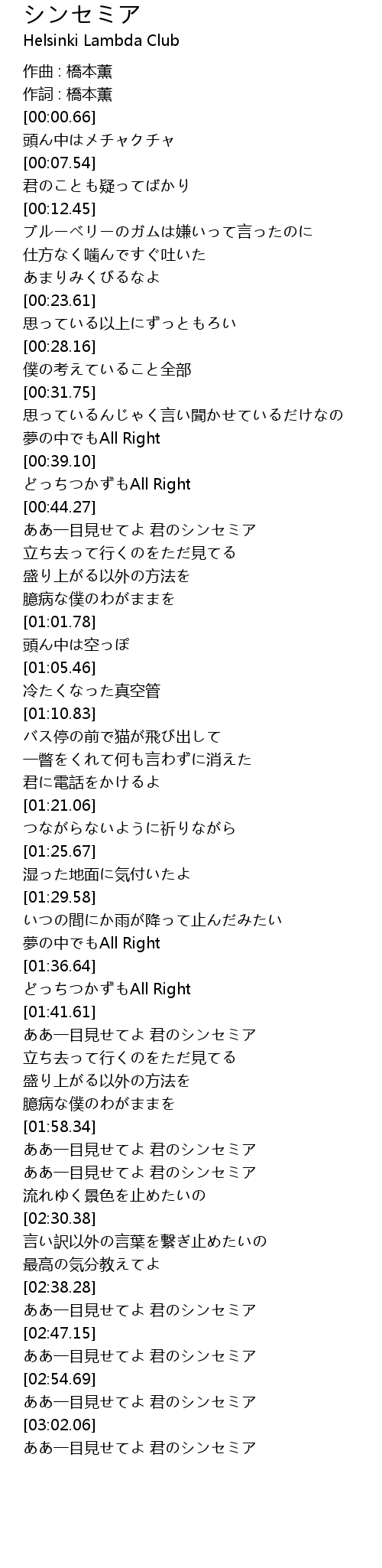 | [03:03.06] | ああ一目見せてよ 君のシンセミア |