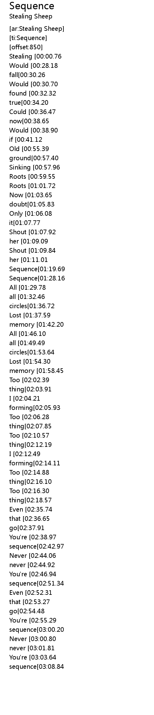 [00:00.61]Stealing [00:00.76]Sheep [00:00.91]- [00:01.07]Sequence[00:01.47]