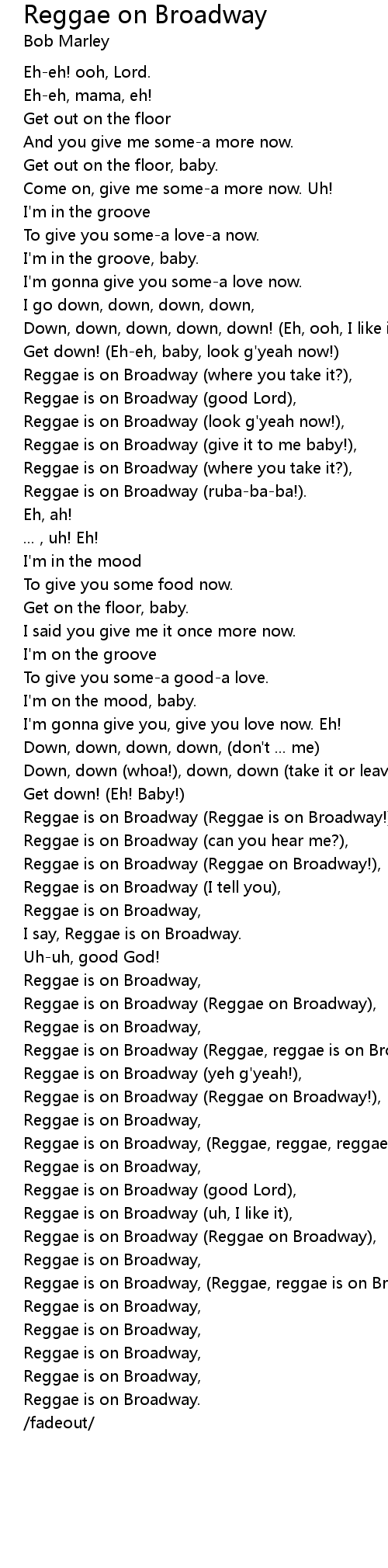 Reggae is on Broadway, (Reggae, reggae is on Broadway!) |