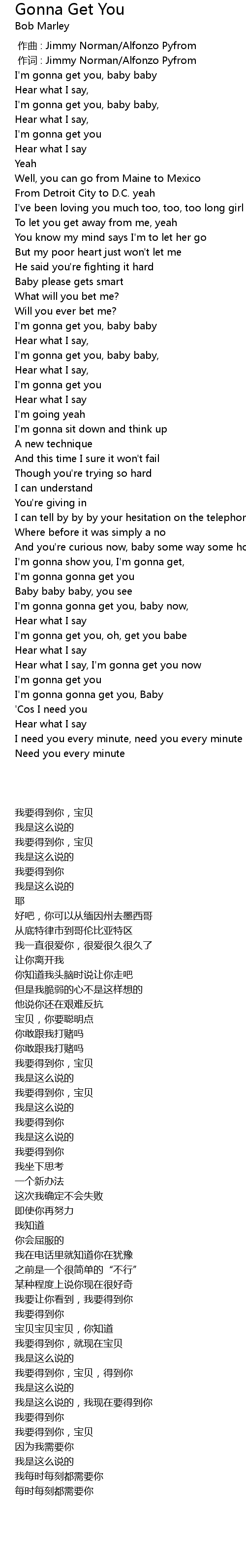 | [02:56.77] | I' m gonna gonna get you, Baby |