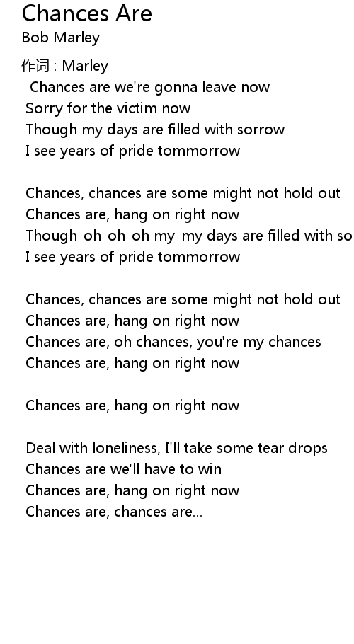 | Chances are, oh chances, you' re my chances | |