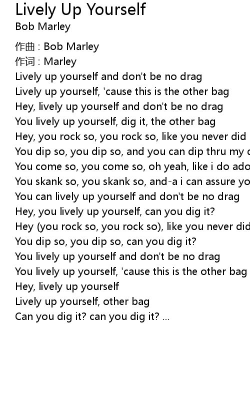 | Lively up yourself and don' t be no drag | |