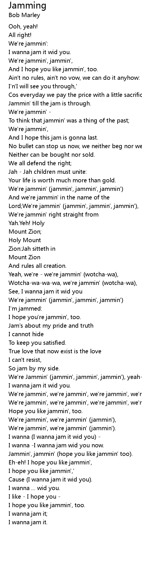 Jammin', jammin' (hope you like jammin' too). |