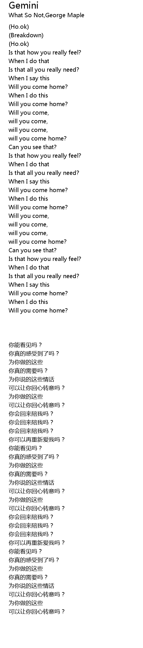 will you come home? |