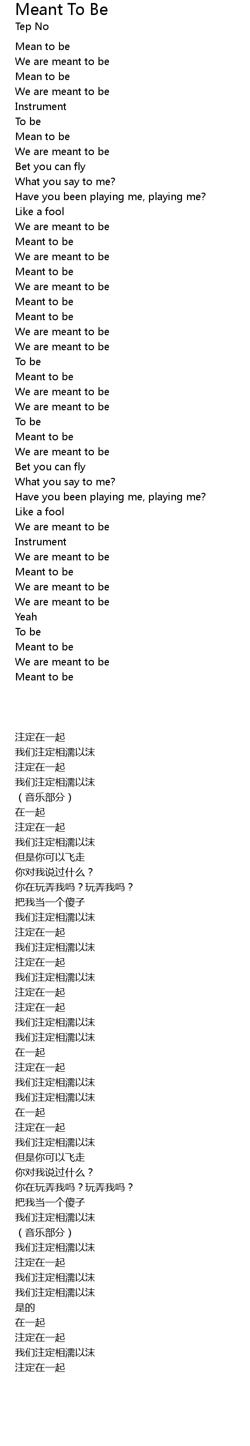 | 歌曲 | Meant To Be |