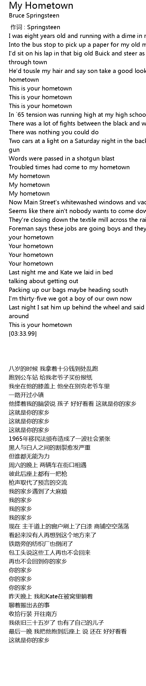 | [03:32.06] | This is your hometown |