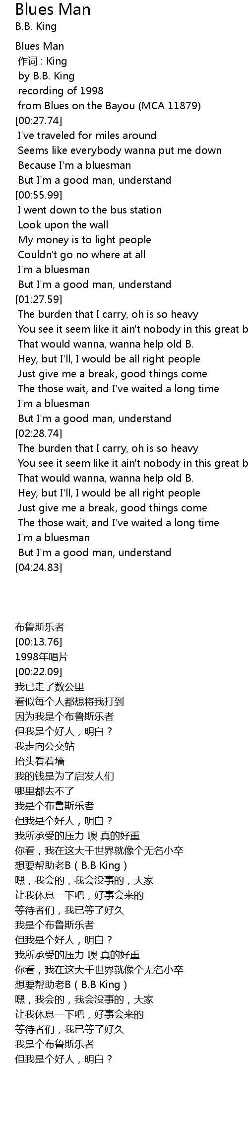 | [03:50.19] | 想要帮助老B(B.B King) |
