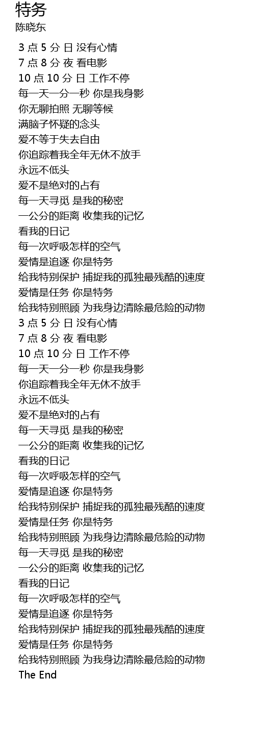 | [03:40.0] | 爱情是任务 你是特务 |