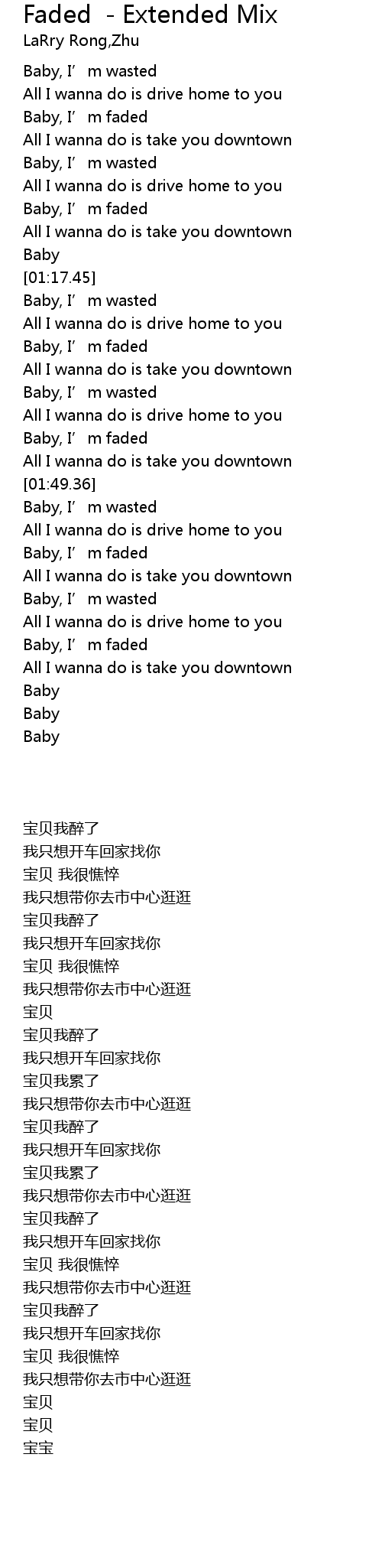 | [01:41.42] | Baby, I' m faded |