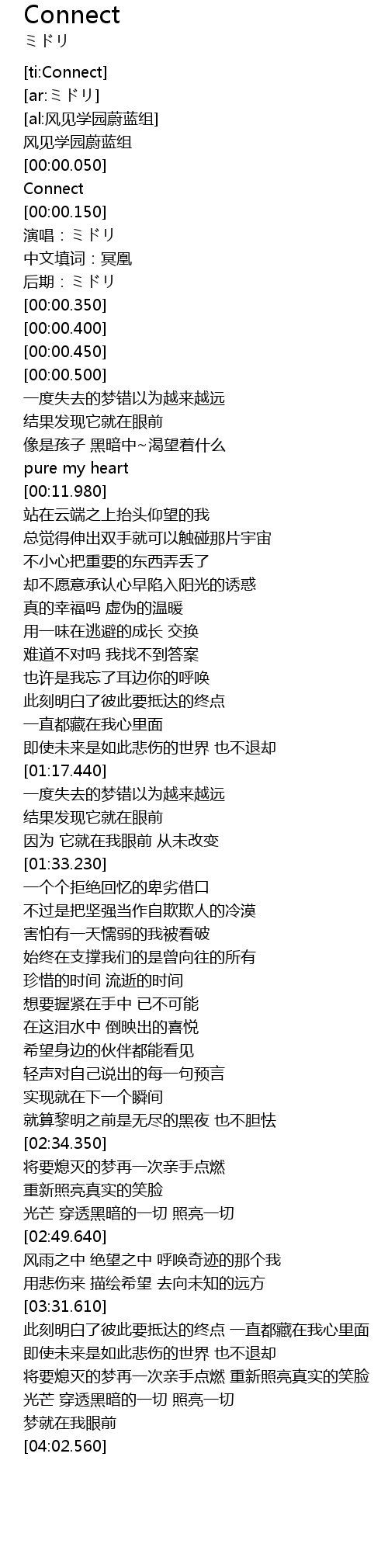 | [03:43.020] | 将要熄灭的梦再一次亲手点燃 重新照亮真实的笑脸 |