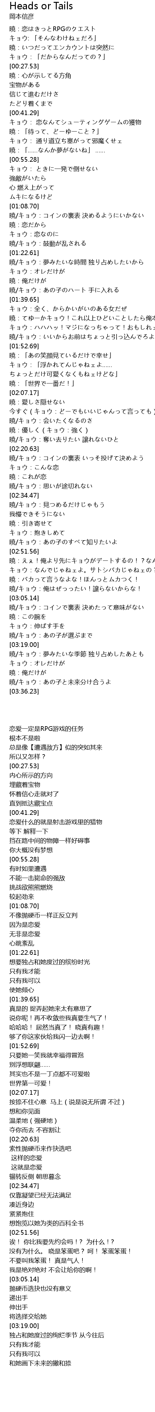 | [02:20.81] | 暁/キョウ:コインの裏表 いっそ投げて決めよう |