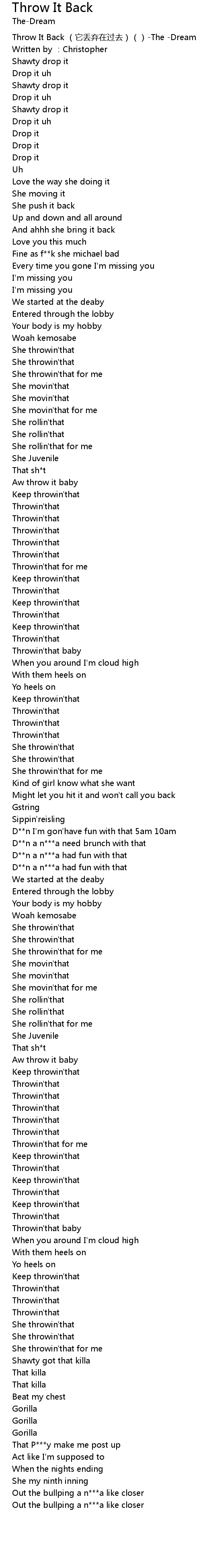 | [00:00.00] | Throw It Back ta diu qi zai guo qu The Dream |