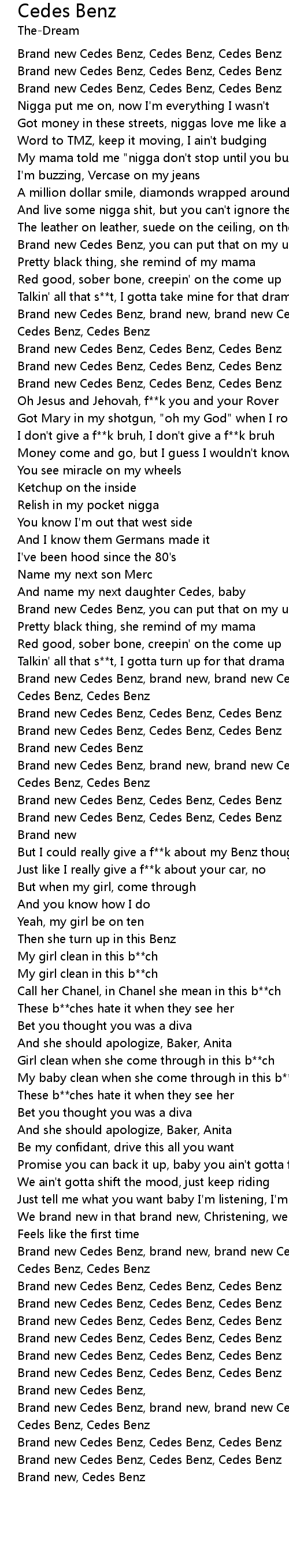 | [02:22.62] | Brand new Cedes Benz, Cedes Benz, Cedes Benz |