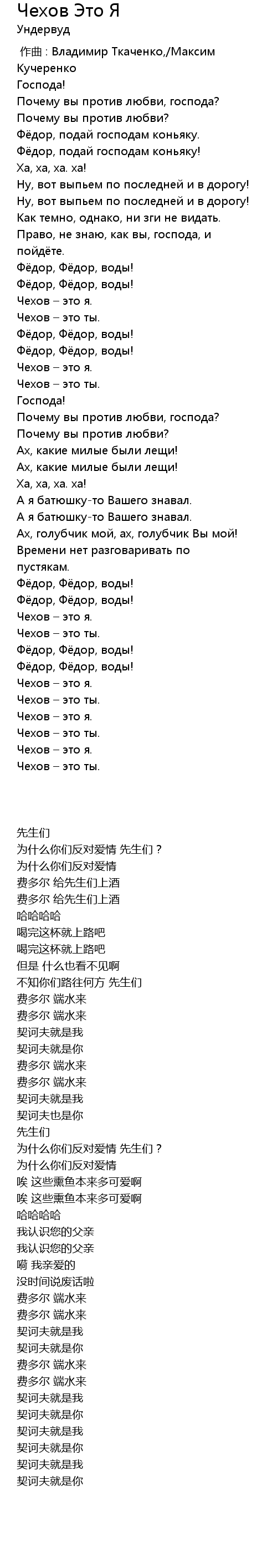 | 歌曲 | Чехов Это Я |