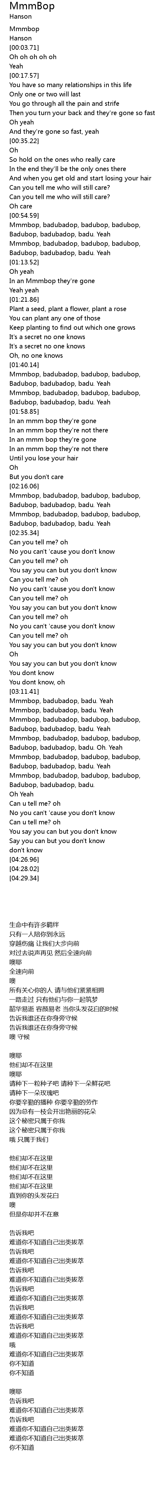 [03:48.56] Mmmbop, badubadop, badubop, badubop,
