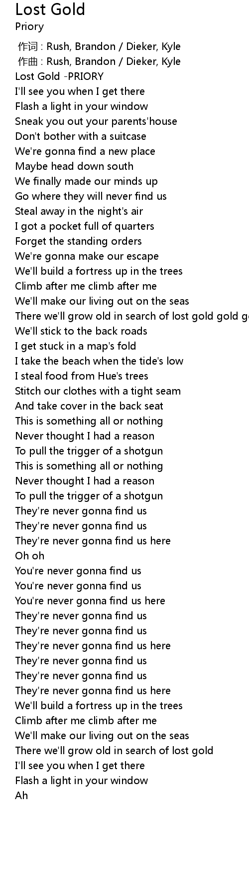 | [00:00.00] | Lost Gold PRIORY |