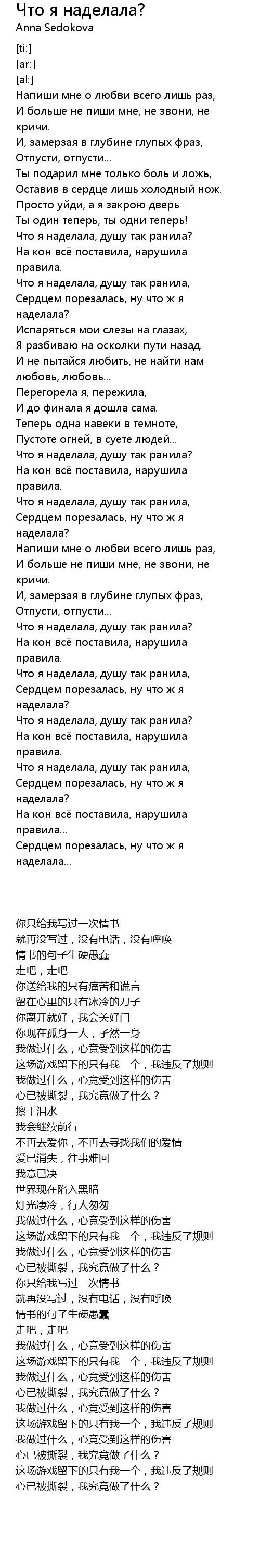 | [02:36.40] | Что я наделала, душу так ранила? |