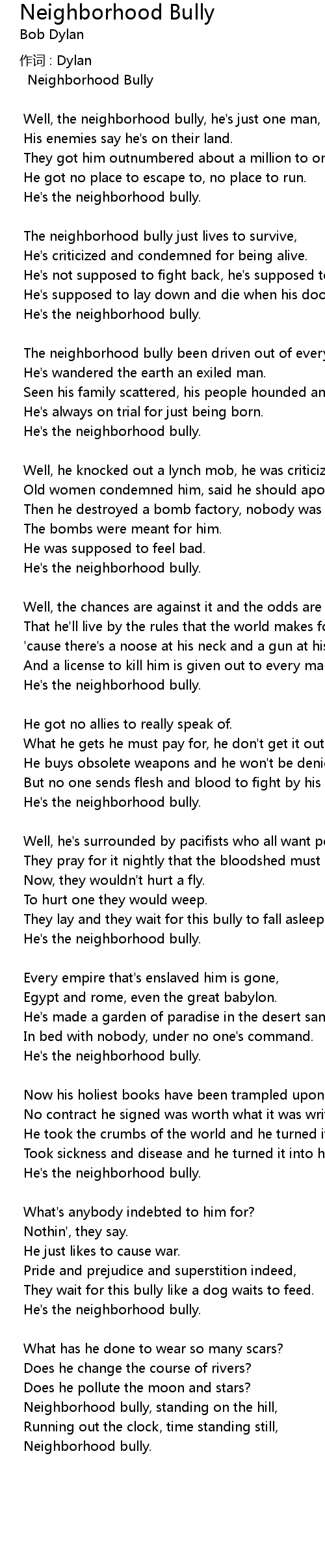 | 歌曲 | Neighborhood Bully |