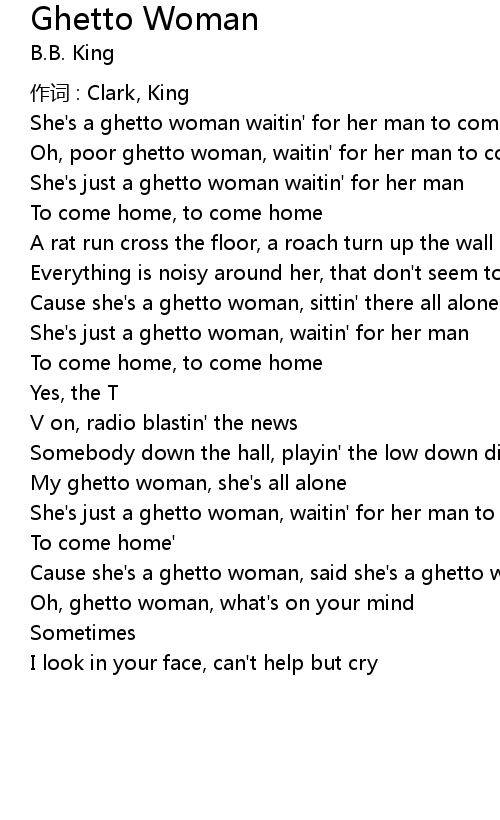 | Cause she' s a ghetto woman, said she' s a ghetto woman | |