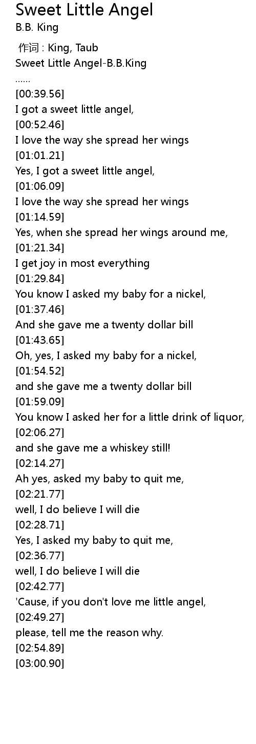 | [00:01.21] | Sweet Little Angel-B.B.King |
