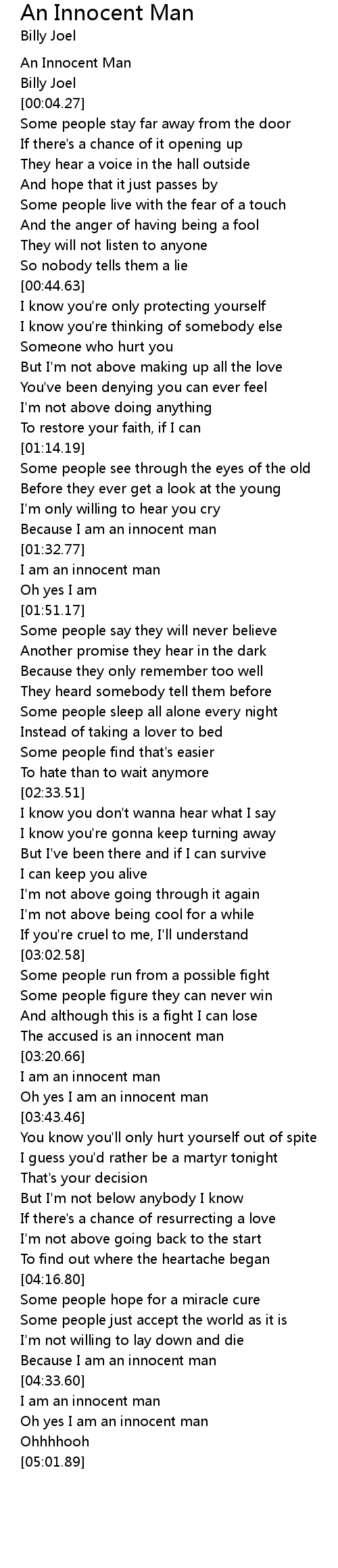 An Innocent Man 歌词