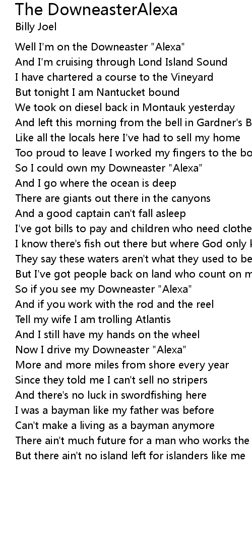 Well I'm on the Downeaster "Alexa" |
