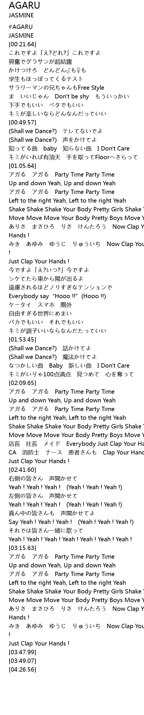 | [03:16.20] | アガる アガる Party Time Party Time |
