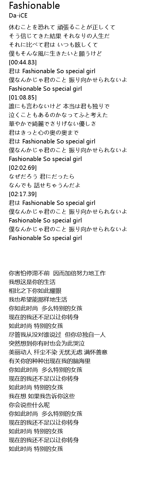 | [00:45.24] | 你如此时尚 多么特别的女孩 |
