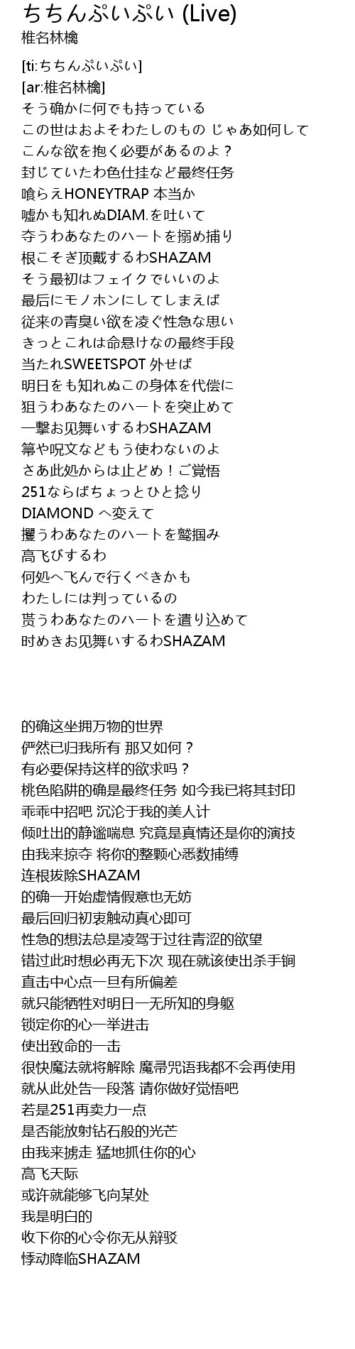 | [00:50.856] | 根こそぎ顶戴するわSHAZAM |