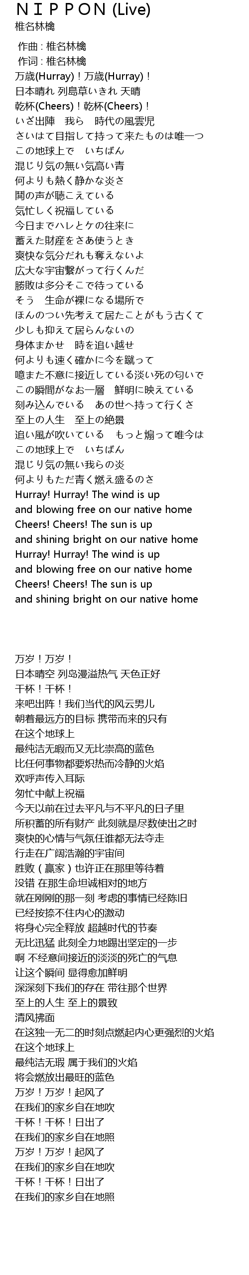 | 歌曲 | NIPPON (Live) |