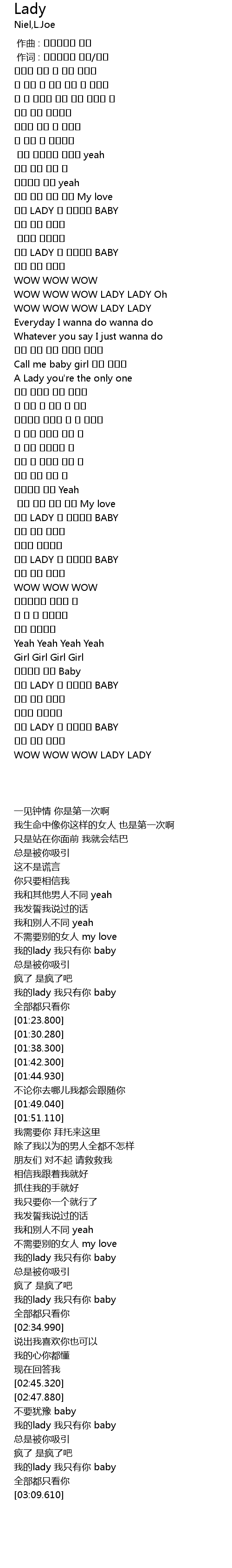 | [01:16.060] | 나의 LADY 넌 나뿐이야 BABY |