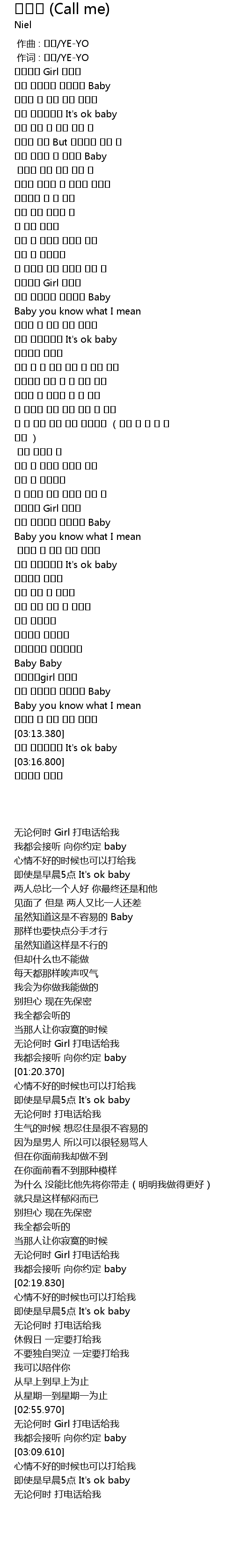 | [02:10.220] | 언제든지 Girl 전화해 |